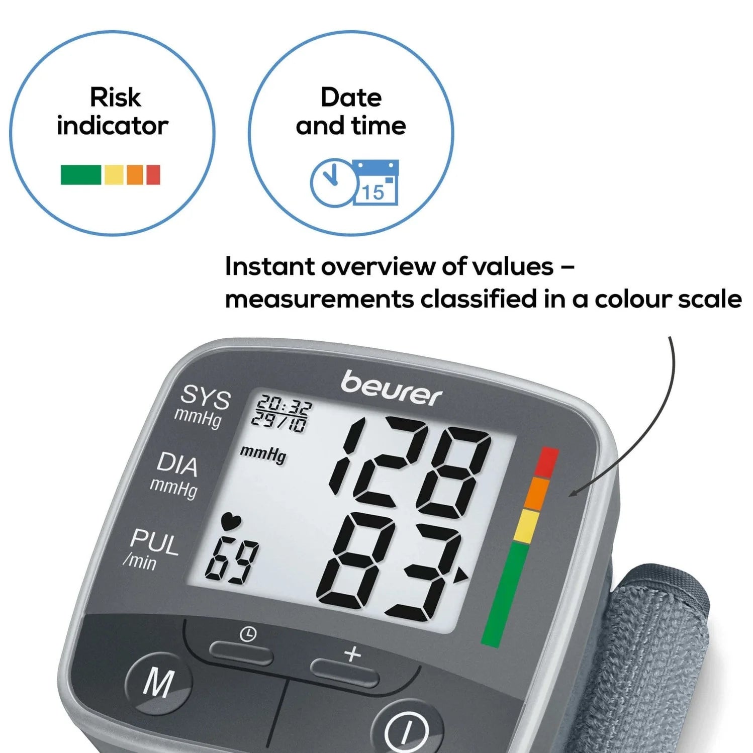 Beurer Germany BC 32 Compact Wrist Blood Pressure Monitor with Risk Indicator Scale & Arrhythmia Detection
