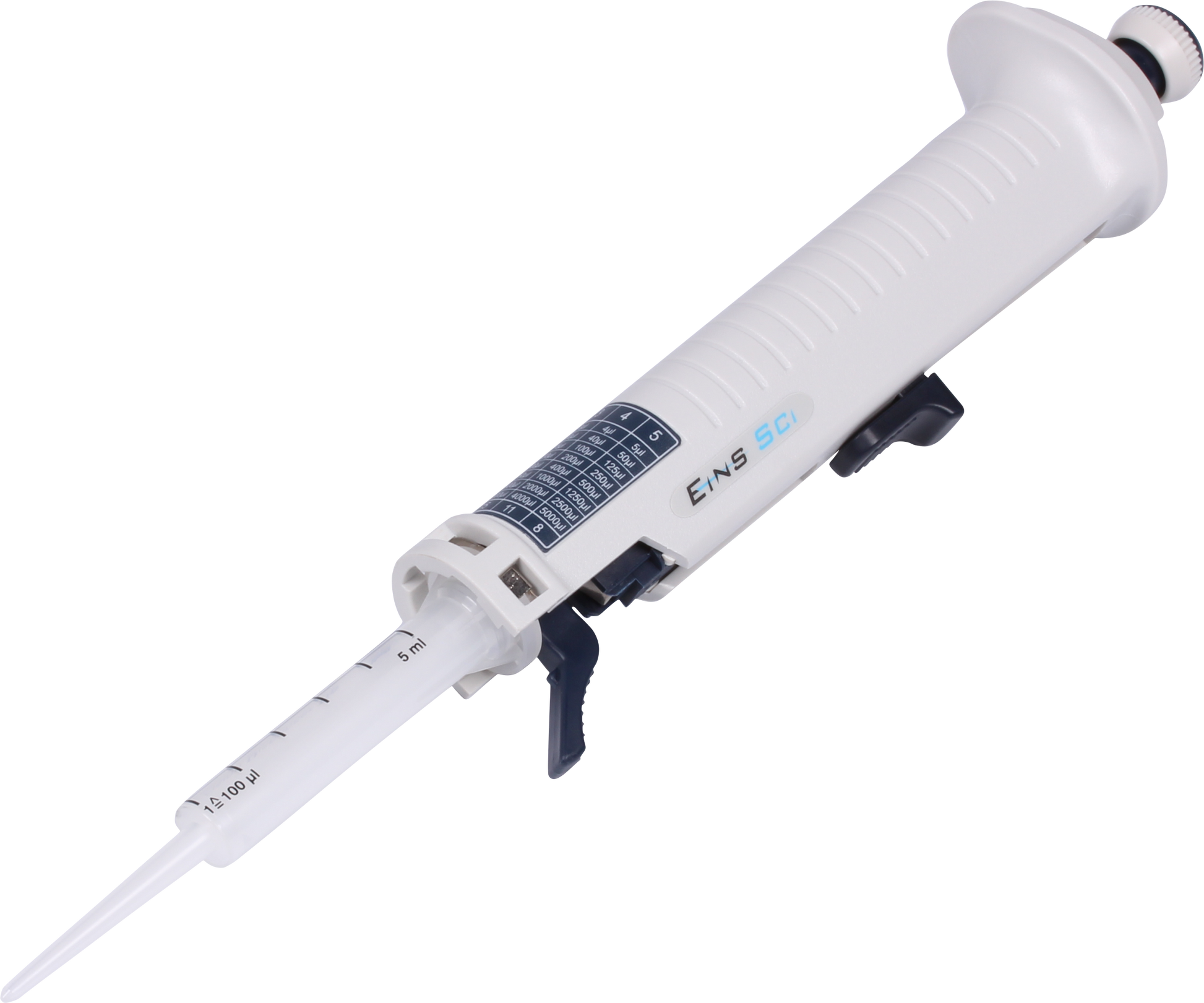 Repeatable Stepper Pipette, Dispensing Volume Range: 10-5000μl, Fits 7 Different Sizes of Disposable Tips, Up to 48 Dispensing Steps, Chart for Volume Indication on Unit, supplied with calibration certificate. Includes 1 x